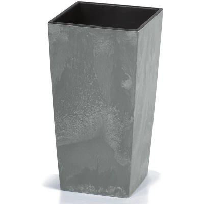 General description The DEUBA® Square Concrete Effect Plant Pot combines a stylish concrete look with lightweight plastic construction, making it an attractive addition to any garden or balcony. This versatile planter can be used indoors or outdoors and features a practical insert pot that allows you to use less potting soil if desired. Technical specifications Dimensions 26L (LxWxH): 265 x 265 x 500 mm Dimensions 49L (LxWxH): 325 x 325 x 610 mm Dimensions 91L (LxWxH): 400 x 400 x 750 mm Insert pot 26L model: 11 Litres Insert pot 49L model: 21 Litres Insert pot 91L model: 37 Litres Weight: 1040g (26L), 1825g (49L), 3300g (91L) Volume completely filled: 26 Litres, 49 Litres, 91 Litres Material: PP Colours: Anthracite or Grey Compatibility and accessories Insert pot included for each size option