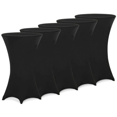 Deuba® Pack of 5 Spandex Tablecloth High Table Slip Covers Tight, Fitted Set, Washable & Wrinkle Resistant Elastic Stretch For Event Wedding Banquet Parties 60 65cm Diameter Black