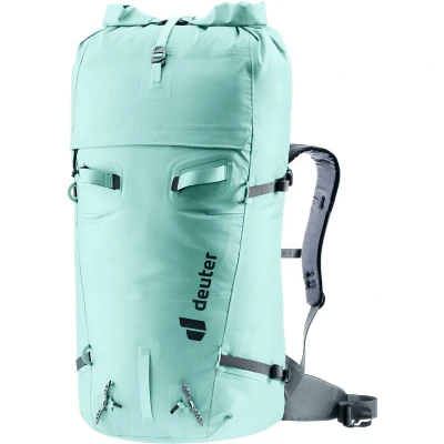 The women's Deuter Durascent 42+10 SL is made from hard-wearing materials, has taped and welded seams, TPU-coated, lapped zippers and a roll-top lid ensuring that no moisture will penetrate this waterproof mountaineering backpack. Hip fins that stow away at the sides contribute not only to the outstanding comfort-to-weight ratio but also allows alpinists to wear it with a climbing harness. Cleverly positioned attachment loops and compression straps for attaching skis are just some of the features that make the waterproof Durascent 42+10 SL backpack so versatile.Weight: 860 gVolume: 42+10LDimensions: 68x29x27 cm