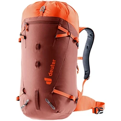 The side stowable hip fins allow for versatile use of the backpack and the wearing of a climbing harness. The main compartment is quickly accessible thanks to the new lid design. Thanks to the helmet holder integrated into the lid, as well as the gear sleeves, side compression straps (compatible with sleeping mats) and ice axe holder, your equipment can be securely fastened to the rucksack. Device for hydration system (deuter Streamer 3.0 - not included!) Your valuables are safely stowed in the zipped side mobile phone compartment with loop and the zipped front pocket with key clip.