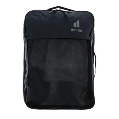 Completely foldable thanks to all-round zip Top is made of air-permeable mesh material, contents are visible from the outside. Reinforced false bottom Mesh compartment for clothing Separate organiser pocket with zip on the back for travel documents, maps, cables and small items 100% recycled fabric