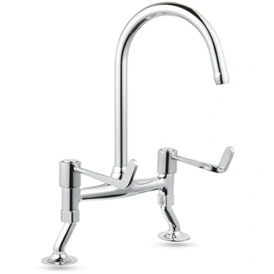 Deva DLV305B Bridge Kitchen Tap in Chrome with 6" Long Large Lever Action Handles Silver Mixer Sink Basin Swivel Spout Taps 12 Year Warranty
