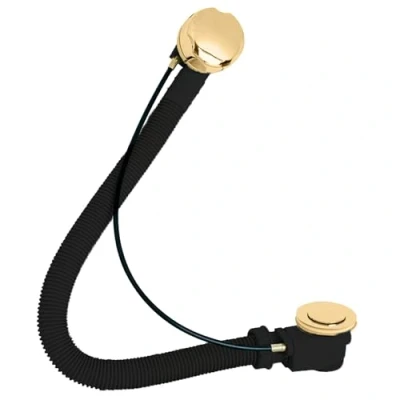 Deva PUW200/501 Replacement Bath Combined Waste & Overflow Kit with Brass Press Top Plug in a Gold Finish Seal Trap Pipe Bathtub Bathroom Set