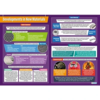 Developments in New Materials Design & Technology Posters Laminated Gloss Paper measuring 850mm x 594mm (A1) and Classroom Education Charts by Daydream