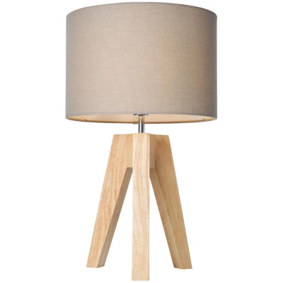 Devlin Table Lamp Wooden Tripod Base With Navy Drum Shade Natural Litecraft