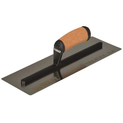 General description This DEWALT FLEX Stainless Steel Flat Trowel is designed for professional use in drywall and plastering applications. It features a lightweight yet durable construction with a stainless steel blade that offers precision and longevity. The trowel is equipped with a comfortable leather handle that molds to the user's hand for maximum comfort during extended use. Suitable for smoothing and finishing surfaces, it provides reliable performance on job sites. Technical specifications Blade Length: 12 inches Blade Width: 4 inches Blade Thickness: 0.4 mm Handle Type: Leather Compatibility and accessories Compatible with standard drywall and plastering materials Can be used with various handle replacements or attachments designed for flat trowels Installation No installation required; ready to use out of the box. Usage Use for smoothing, finishing, and applying plaster or drywall compounds Apply even pressure to achieve a smooth surface Clean after use to maintain blade