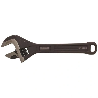 Dewalt All Steel Adjustable Wrench 10in, with Precision Engineered Jaws to facilitate Minimal jaw Movement Between Movable and Fixed for Precise adjustments.