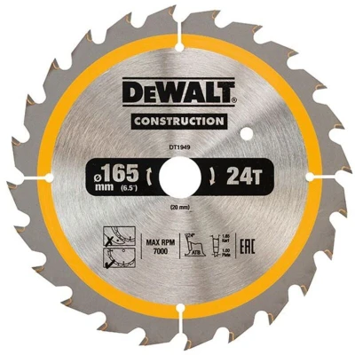 General description This DEWALT Cordless Construction Trim Saw Blade is engineered for professional and DIY use, providing precise and clean cuts in wood, MDF, and laminated materials. Its impact-resistant carbide teeth minimize the risk of chipping or breaking, while the ultra-sharp design requires less force for cutting, making it ideal for demanding job site operations. Technical specifications Blade Diameter: 165mm Blade Bore: 20mm Tooth Count: 24 Plate Thickness: 1.0mm Kerf Thickness: 1.65mm Grind Type: ATB Rake Angle: +24° Maximum RPM: 7,000rpm Cutting Edge Type: Toothed Cutting Material: Carbide Finish/Coating: Uncoated Special Features: Noise-reducing Expansion Slots, Anti-kickback with Thin Kerf for Cordless Saws, Alternate Top Bevel Tooth Form Compatibility and accessories Compatible with DW935 and DW936 models Ideal for cutting through nail-embedded wood Installation Ensure the saw is unplugged before installation Remove the existing blade and clean the arbor Align the new