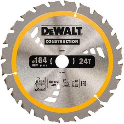 General description This DeWalt Circular Saw Blade is a high-quality tool designed for cutting construction wood. It features a thin kerf for efficient cutting and durable tungsten alloy teeth for maximum performance. The ultra-slim body allows for wider cuts and increased cutting power, making it suitable for demanding tasks. The triple-layer ceramic tooth technology ensures a clean and precise cut with a strong edge. Technical specifications Diameter: 184 mm Arbor size: 20 mm Number of teeth: 24 Tooth configuration: ATB Kerf: 1.79 mm Plate thickness: 1.13 mm Hook angle: +18° Compatibility and accessories Compatible with standard circular saws that accept a 20 mm arbor Designed for fast cutting in wood and fits DW935 and DW936 models Installation Ensure the saw is unplugged before installation Attach the blade securely to the saw arbor Check that the blade is properly aligned and tightened before use Usage Use for cutting construction wood and similar materials Operate the saw