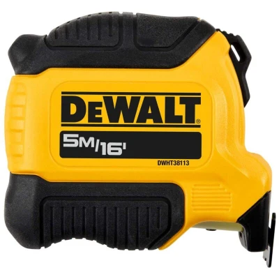 General description The DEWALT Compact Tape Measure is a versatile measuring tool designed for convenience and durability. With a length of 5 meters (16 feet) and a width of 28mm, its compact design allows it to easily fit in your hand, toolbox, or pocket. The durable, coated steel blade is suitable for tough working conditions, making it ideal for various measuring tasks. Technical specifications Length: 5 meters (16 feet) Blade width: 28mm Extended reach: 3 meters Accuracy: EC Class II Blade material: Coated steel Compatibility and accessories Compatible with standard measuring tasks No additional accessories included Installation No installation required Usage Use for measuring distances in construction, carpentry, DIY projects, and home improvement tasks Hold the tape firmly and extend to the desired length Use the finger brake to control retraction and maintain measurement accuracy
