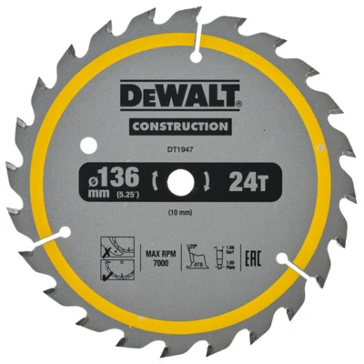 Dewalt Cordless 18 V DT1947 Circular SAEGE Blade 136/10 mm 24WZ, 1 Piece