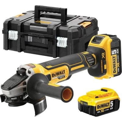 General description The DEWALT DCG405P2 XR Brushless Grinder is a powerful cordless angle grinder designed for demanding applications. It features a brushless motor that enhances performance and efficiency. The grinder comes with two 18V 5.0Ah Li-ion batteries and a multi-voltage charger, ensuring you have the power you need for extended use. Technical specifications Battery Type: Lithium-ion Brushed or Brushless: Brushless Disc Diameter: 125mm No Load Speed: 9,000rpm Power Source: Battery Voltage: 18V Weight: 1.75kg Spindle: M14 Compatibility and accessories 2 x 18 Volt 5.0Ah Li-ion Batteries 1 x 2 Position Side Handle 1 x Keyless Protective Guard 1 x Blade Wrench 1 x Multi-Voltage Charger Installation Easy installation of the side handle for improved control. Keyless protective guard allows for quick adjustments. Usage Ideal for cutting, grinding, and polishing tasks. Electronic brake stops the wheel quickly for added safety. Rubber overmould provides enhanced grip and comfort