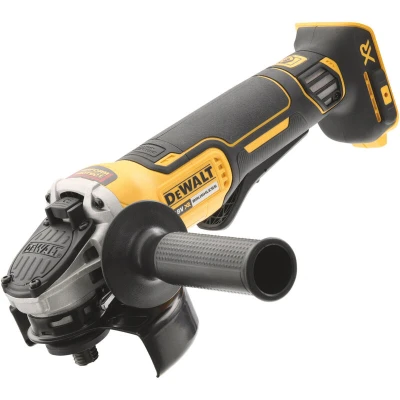 General description The DEWALT DCG406N XR Brushless Angle Grinder is a powerful and versatile tool designed for various grinding applications. This 18V bare unit features a paddle switch operation, making it user-friendly and efficient. With its brushless motor, it delivers high performance and durability, making it a great addition to DeWalt’s cordless portfolio. Technical specifications No Load Speed: 9,000 rpm Max Disc Diameter: 125 mm Spindle Thread: M14 Weight: 1.75 kg Vibration: 6 m/s² Features Electronic brake stops the wheel quickly when the trigger is released Electronic clutch reduces kickback reaction in the event of a pinch or stall Mesh cover restricts dust from entering the motor, prolonging its life Rubber overmould provides enhanced grip and comfort Two-position side handle for greater comfort and control Soft start feature helps the tool warm up with reduced torque Other information