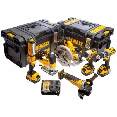 General description The DEWALT DCK663P3 18V 6 Pack is a comprehensive tool kit designed for both professionals and DIY enthusiasts. This kit includes a range of powerful tools, all equipped with brushless motor technology for enhanced efficiency and longevity. It features a combi drill, impact driver, circular saw, jigsaw, grinder, and a torch, making it ideal for various applications in home improvement and construction projects. Technical specifications DCD796 Combi Drill: Brushless motor, two-speed all-metal transmission, 3-position LED light DCF887 Impact Driver: 190Nm torque, compact design (131mm length), 1.0kg weight DCS570 Circular Saw: 184mm blade, cutting depth up to 65mm, bevel angle up to 57 degrees DCG405 Grinder: Brushless motor, capable of 69 cuts in 1/2" steel rebar with a 5.0Ah battery DCS334 Jigsaw: Max 3200 SPM, 26mm stroke length, cutting capacity of 135mm in wood and 25mm in aluminum DCL050 Torch: 250-500 lumen output, up to 10 hours runtime Battery: 3 x 5.0Ah