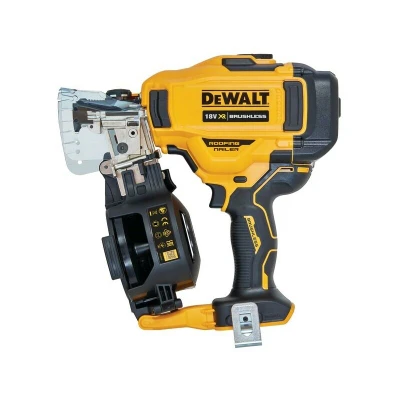 General description The Dewalt DCN45RN Brushless Roofing Coil Nailer is the world's first battery-powered cordless roofing nailer, specifically designed for roofing felt and vapor barriers. It is also suitable for flashing, siding, cladding, sub-flooring, and fencing. This tool is ideal for fencing and flooring contractors as well as roofers, providing high efficiency and reliability. Technical specifications Weight: 3.4 kg Nail Length: 19 - 45 mm Nail Diameter: 3.05 - 3.40 mm Nail Capacity: 120 nails Shots per second: 3 Compatibility and accessories Compatible with DEWALT DNR range of nails Compatible with CR Bostitch range of nails Bare tool - battery and charger not included Installation Tool-free depth of drive adjustment for accurate nail placement 3-position canister floor to optimize nail feed and reduce jamming Tool-free stall release to return the driver blade after a jam Usage Fires up to 500 nails per charge on a 2Ah battery Fires up to 1300 nails on a 5Ah battery Designed