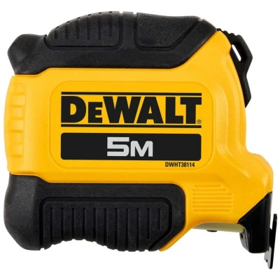 General description This compact and durable tape measure from DeWalt offers reliable measurement for various DIY and home improvement projects. Its ergonomic design and lightweight construction make it comfortable to handle, while its sturdy rubber housing provides a secure grip and extra protection against impacts. The tape features a wide, abrasion-resistant 28mm blade that maintains rigidity up to 3 meters without support, ensuring precise measurements. Technical specifications Brand: DeWalt Model: DWHT38114-0 Length of the blade: 5 meters Blade width: 28mm Accuracy: EC Class II Compatibility and accessories Suitable for general measuring tasks in DIY, construction, and home improvement projects Installation No installation required; ready to use out of the box Usage Extend the tape to measure distances accurately Use the rubberized housing for a secure grip and protection against drops Utilize the robust finder for easier and safer measurements Fitted with a finger brake for