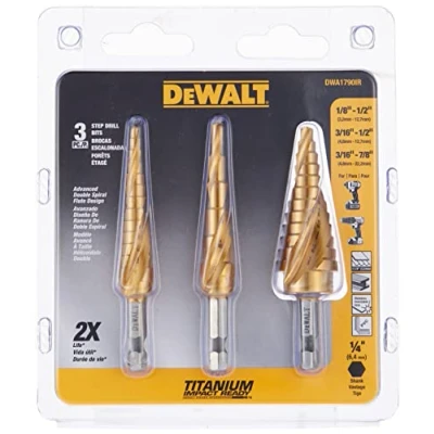 Titanium Nitride Coated two flute spiral design provides longer life and better chip removal for the DEWALT drill bit set Split point tip of the drill bit increases speed Laser engraved numbers increases step visiblity 1/4-inch hex shank Optimized for impact driver usage, Weight: 0.31 pounds, Manufacturer: DeWalt