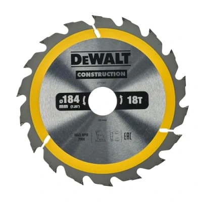 General description DEWALT Construction Circular Saw Blade is designed for use with portable machines, ideal for cutting softwoods and composite materials. The blade features impact-resistant carbide teeth that minimize the risk of chipping or breaking, along with ultra-sharp cutting edges and Alternate Top Bevel (ATB) teeth to reduce splintering. Its durable construction ensures fast, smooth cutting, making it suitable for demanding job site operations, including cutting through rough timber and embedded nails. Technical specifications Blade Diameter: 184 mm Blade Bore: 30 mm Tooth Count: 18 Plate Thickness: 1.7 mm Kerf Thickness: 2.6 mm Grind Type: ATB Rake Angle: +20° Compatibility and accessories Compatible with DeWALT and other standard power tools Includes 1 blade per package Installation Designed to fit standard 30 mm arbor size Easy to install on compatible saws with appropriate mounting Usage Ideal for quick cuts in construction, framing, and renovation projects Suitable for