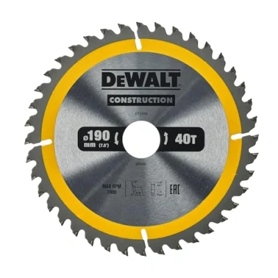 General description This DeWALT Construction Circular Saw Blade is designed for use with portable and stationary machines, making it ideal for cutting softwoods and composite materials. Its durable construction and ultra-sharp cutting edges ensure fast, smooth cutting action, perfect for demanding jobsite operations, including cutting through rough timber and embedded nails. The blade features impact-resistant carbide teeth that minimize the risk of chipping or breaking, along with a wedge shoulder that protects the carbide from nail impacts. Technical specifications Blade Diameter: 190mm Blade Bore: 30mm Tooth Count: 40 Plate Thickness: 1.7mm Kerf Thickness: 2.6mm Grind Type: ATB Rake Angle: +10° Maximum RPM: 7,000rpm Cutting Edge Type: Toothed Cutting Material: Carbide Finish/Coating: Uncoated Special Features: Noise-reducing Expansion Slots, Anti-kickback with Thin Kerf for Cordless Saws, Alternate Top Bevel Tooth Form Usage Ideal for cutting rough timber, possibly with embedded
