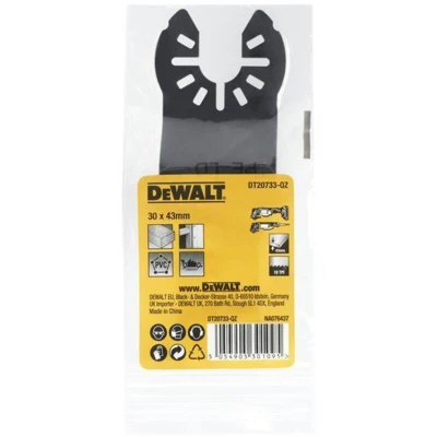 General description The DEWALT DT20733 Fastcut Wood Multi-tool Blade is designed for versatile cutting tasks, including wood, plasterboard, and PVC. It is durable enough to tackle tough jobs, making it ideal for various DIY and home improvement projects. Technical specifications Width: 43mm Length: 30mm Compatibility and accessories Compatible with all major oscillating tools due to UNIVERSAL FITMENT™ Installation Easy to install without the need for adapters, thanks to universal fitment Usage Suitable for cutting wood, plasterboard, and PVC Ideal for general DIY, renovation, and home improvement tasks