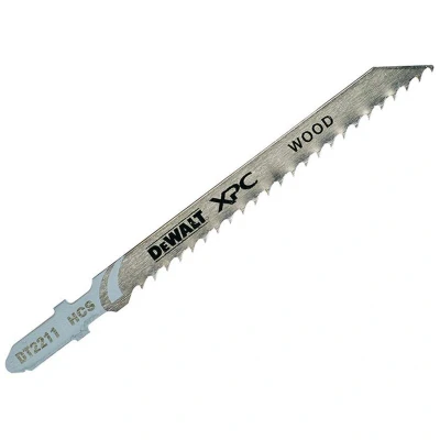 General description The DEWALT XPC HCS Wood Jigsaw Blades are designed for precise and efficient cutting in various wood materials and plastics. These blades provide basic straight cuts in wood, chipboard, and plastics, ensuring accurate and smooth cutting results. They feature a plunge point tip design for easy plunge cutting with minimal kick-back and a thicker body for increased durability. Technical specifications Blade Material: High Carbon Steel (HCS) Cut Type: Straight Basic Cutting Application: Plastic, Chipboard, Wood Overall Length: 100mm Pack Quantity: 5 blades Shank Type: T-shank Tooth Spacing: 3.1mm Type: DT2211-QZ Cutting Thickness: 60mm Compatibility and accessories Compatible with jigsaws that accept T-shank blades Installation Insert the blade into the jigsaw's blade holder, ensuring it is securely locked in place Use the plunge cut feature for starting cuts in the middle of materials Usage Ideal for making straight cuts in wood, plastics, and chipboard Use for