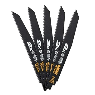 The DEWALT 2X Life Wood & Nail Reciprocating Blades have superior HSS (high speed steel) teeth with added Cobalt for excellent cutting performance and extreme durability in the most demanding applications. The optimised blade design provides increased height and thickness for sturdiness, strength and extreme durability. Fast and accurate cutting in wood applications thanks to the Plunge Point tip technology which pierces the wood and removes more material. The ToughCoat hardened coating lowers surface friction and reduces heat build up to promote long blade life. DEWALT 2X Life Wood & Nail Reciprocating Blades 228mm