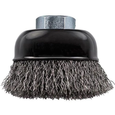 General description This is a crimped wire cup brush designed for heavy-duty cleaning and surface preparation tasks. It is suitable for removing paint, rust, deposits, and for surface remediation and deburring. Technical specifications Diameter: 65mm Spindle: M14