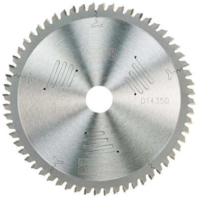 The DEWALT DT4350 Series 60 circular saw blade delivers smooth, accurate cross-cuts in plywood, softwood and hardwood. Laser-cut expansion slots reduce vibration and noise while extra-large sub-micro grain carbide teeth stay sharper longer and can be resharpened up to 20 times. Alternate top bevel and triple-chip grind geometry with tuned angles produces a clean, extra-fine surface finish. Specifications: 216mm diameter, 30mm bore, 60 teeth, 1.8mm plate thickness, 2.6mm kerf, ATBN grind, -5° rake. Ideal for table and mitre saws and suitable for natural wood, plywood, laminates, particleboard and MDF. Laser-cut expansion slots reduce vibration and noise. Extra-large sub-micro grain carbide teeth for prolonged sharpness. Teeth can be resharpened up to 20 times to extend blade life. Suitable for natural wood, plywood, laminates, particleboard and MDF. Designed for use on both table saws and mitre saws. Alternate top bevel and triple chip grind geometry for a clean surface finish. Extra