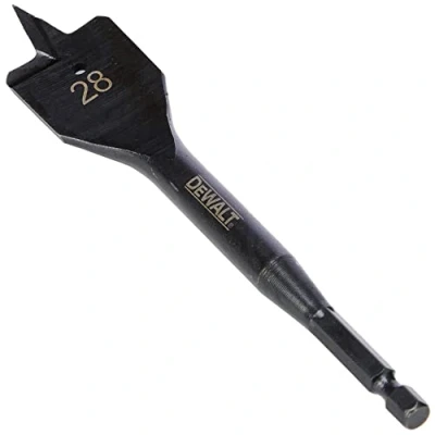 General description This DEWALT Extreme Flatwood Drill Bit is designed for rapid drilling in wood, making it ideal for applications such as door locks, mortising, electrical, and plumbing work. It features an extra thick robust steel shank for outstanding durability and chamfered outer cutting spurs for clean, fast drilling and extended bit life. Technical specifications Diameter: 28mm Length: 152mm Shank Diameter: 6.35mm Shank Shape: Hexagon Bit Type: Flat Bit Centre Type: Solid Number of Spurs: 2 Compatibility and accessories Compatible Materials: Natural hard and soft wood, chipboard, plywood, MDF, and other man-made materials Other information MPN: DT4773-QZ EAN: 5035048073063