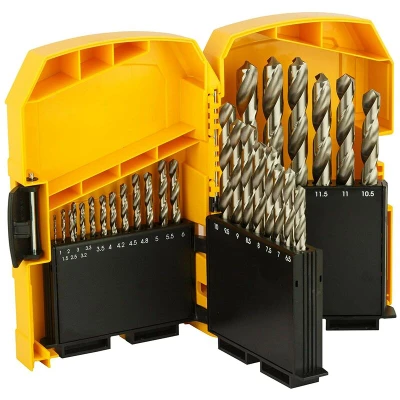 General description DEWALT Extreme Metal Drill Bits are designed for both portable and stationary drilling of steel, including alloyed and non-alloyed materials, with a hardness of up to 900N/mm. They excel in drilling sheet or thin materials, ensuring accurate, burr-free holes. Additionally, they are effective for use in wood and plastic materials. The patented split pilot point design prevents walking or slipping upon contact. Technical specifications Number of pieces: 29 Sizes included: 1, 1.5, 2, 2.5, 3, 3.2, 3.3, 3.5, 4, 4.2, 4.5, 4.8, 5, 5.5, 6, 6.5, 7, 7.5, 8, 8.5, 9, 9.5, 10, 10.5, 11, 11.5, 12, 12.5, 13mm Material: HSS (High-Speed Steel) Compatibility and accessories Compatible with standard drill chucks Installation Insert the desired drill bit into the drill chuck and tighten securely. Usage Ideal for drilling into steel, alloyed and non-alloyed materials, wood, and plastic. Best suited for applications requiring precise and clean holes. Other information