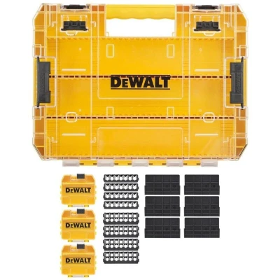 AmazonPart of the DeWalt TOUGHCASE range Large Organiser / 3x Small Bulk Cases / 8x Screwdriver Bit Bars / 6x Dividers Ideal for storing power tool accessories and small components, Manufacturer: Dewalt