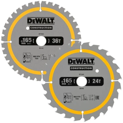Dewalt DT90270 Construction Circular Saw Blade 2 Pack 165 x 20mm 24T/36T