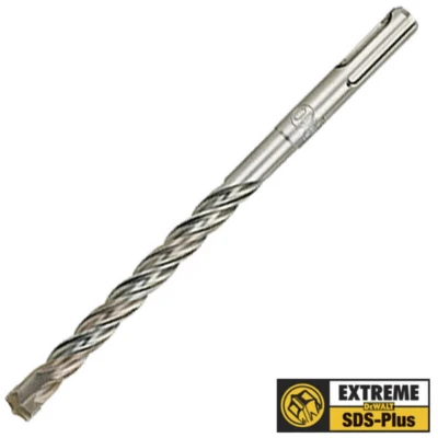 General description The DEWALT SDS-Plus EXTREME 2 Drill Bit is engineered for fast and efficient drilling in concrete, masonry, bricks, and blocks. Made from superior carbide grade, it offers long life and enhanced durability. The hardened body adds strength and reduces the risk of breakage, while the optimized flute design ensures efficient debris removal and the new tip design allows for better penetration, faster drilling, and longer life. Technical specifications Type of shank: SDS Plus fitment Application: Concrete and masonry Diameter: 6.5 mm Overall length: 160 mm Working length: 100 mm Compatibility and accessories Compatible with SDS Plus rotary hammer drills Suitable for use with standard SDS Plus chucks Installation Insert the drill bit into the SDS Plus chuck of your compatible rotary hammer Ensure it is securely fitted before operation Usage Use in rotary hammer drills with SDS Plus fitting for drilling into concrete, masonry, and similar materials Apply steady pressure