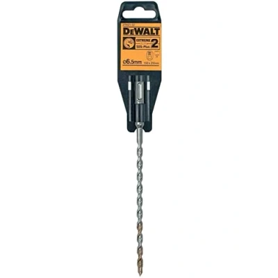 General description The DEWALT SDS-Plus EXTREME 2 Drill Bit is engineered for fast drilling into masonry, stone, concrete, and bricks or blocks. It features a hardened steel body for durability and a reinforced, two-cut head with two cutting tips for efficient and quick drilling. The optimized flute design allows for efficient debris removal, while the new tip design ensures better bit penetration, longer life, faster drilling, and greater durability. Technical specifications Diameter: 6.5 mm Total length: 210 mm Working length: 150 mm Shank type: SDS Plus Design: Two-stage spiral with wear indicator for precision drilling Additional features: TouchCore tapered central core for increased stability and durability, 140° cutting head for enhanced performance, and a new 4-channel spiral for efficient chip removal Compatibility and accessories Compatible with SDS Plus rotary hammer drills Suitable for anchoring and doweling in concrete and masonry Installation Insert the drill bit into an