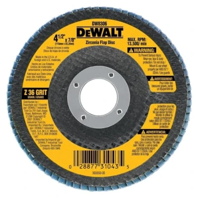 DEWALT DW8311 4 1/2 Inch by 5/8 11 36 Grit Zirconia Angle Grinder Flap Disc