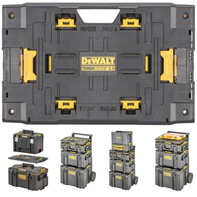 General description Dewalt DWST08017-1 Toughsystem 2.0 Adaptor Plate to TSTAK offers an integration of TSTAK, ToughSystem 2.0, and Tough Cases for a flexible storage system. This adaptor plate features integrated slots on both sides for hanging power tools and accessories via a belt hook, ensuring maximum accessibility. It can accommodate up to 2 medium ToughCases, up to 4 small ToughCases, or a combination of 1 medium and 2 small cases. Technical specifications Dimensions: 37 x 55 x 7 cm Compatibility and accessories Compatible with TSTAK & ToughSystem Connects TOUGHSYSTEM® 2.0 products to DEWALT® TSTAK™ modules Connects TOUGHSYSTEM® 2.0 products to TOUGHCASE® sets Usage Allows integration of the PTA Toughcases into the TOUGHSYSTEM platform Enables the creation of a storage ecosystem for end users
