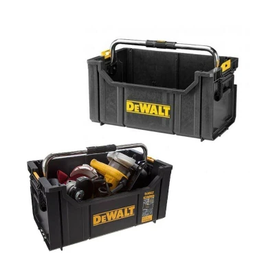 General description The DeWalt DWST1-75654 Toughsystem Tote is designed for efficient transportation and organization of tools. With a robust construction and a capacity to hold up to 20 kg, this tote features convenient side handles and a large metal grip handle for easy one-handed carrying. It is compatible with other Toughsystem cases, allowing for seamless stacking and transport. Technical specifications Dimensions: 558 x 277 x 330 mm Weight: 4 kg Max Load: 20 kg Material: Polypropylene Structural Foam Colour: Black/Yellow Other information