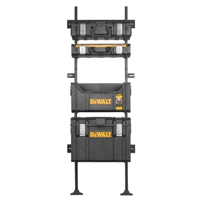 General description The DEWALT DWST1-75694 TOUGHSYSTEM Workshop Racking is designed to fit all TOUGHSYSTEM modules, offering a modular solution that adapts to your workshop or garage needs. You can easily add or remove modules as required, ensuring flexibility in your storage options. Technical specifications Max Load per Rack: 200kg Max Load per Pair of Brackets: 40kg Depth: 740mm Height: 160mm Width: 255mm Colour: Black Type: Workshop Racking Solution Manufacturer Part Number (MPN): DWST1-75694 EAN: 5035048659212 Compatibility and accessories Compatible with all Tough System modules Includes 2 supportive legs 5 pairs of height-adjustable and removable brackets Installation Easy and fast self-assembly with the option to add a self-made shelf to the bracket. Usage This racking system is ideal for organizing tools and toolboxes within your workshop or garage, maximizing space and efficiency. Other information
