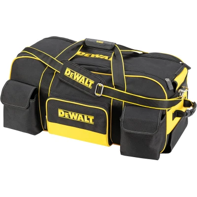 General description The DEWALT DWST1-79210 Tool Bag is a large, durable duffel bag designed for easy transport of tools and accessories. With a storage capacity of 67 litres, it features a wide top opening for quick access and is equipped with wheels and a telescopic handle for mobility. The bag is constructed from padded woven nylon, ensuring both comfort and longevity while carrying heavy loads. Technical specifications Dimensions: L. 700 mm x W. 305 mm x H. 318 mm Weight: 5.5 kg Material: Polyester Number of Compartments: 14 Lock Type: Zipper Storage Capacity: 67 litres Overall Depth: 300 mm Overall Height: 295 mm Overall Width: 600 mm Compatibility and accessories Includes internal drill holster Features 8 external pockets and 5 internal pockets for organized storage Comes with a removable divider Includes a padded shoulder strap and hand carry strap Installation No specific installation instructions are provided for this product. Usage The DEWALT DWST1-79210 Tool Bag is ideal for