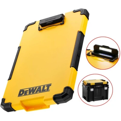 General description The DeWalt LED Clipboard T-STAK DWST82732-1 is an ideal clipboard for trade professionals, DIY enthusiasts, and stationery lovers. It features integrated 180° LED lights, making it easier to work in dark conditions while reducing eye strain. The clipboard is designed to be compatible with T-Stak 1 and T-Stak 2 boxes, allowing for easy storage and organization. Technical specifications Material: Nylon Interior LED: 180° Compatibility: T-Stak Compatibility and accessories Compatible with T-Stak boxes Supplied with: 1 x LED Clipboard, 1 x Branded Sleeve Usage Ideal for trade professionals and DIY enthusiasts Two metal clips for securing important papers Sturdy surface for writing in difficult conditions Internal zipped compartment for document storage One-handed opening via auto-latch