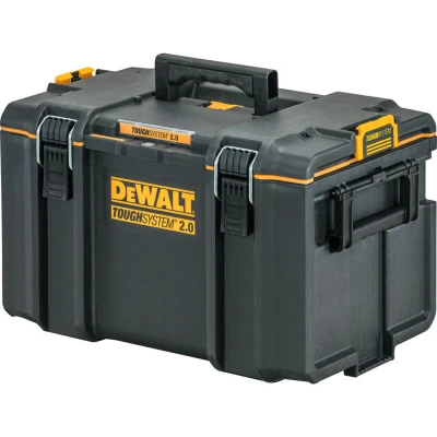 The interior of the DeWALT TOUGHSYSTEM toolbox is spacious, accommodating larger tools with ease. It also features a removable tray for organizing smaller accessories, giving you the flexibility to arrange your tools in a manner that best suits your workflow. The wide and strong handles make it easier to lift and transport the box, especially when it is filled to capacity.