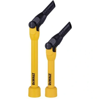 General description The DEWALT DXVA00-1200E Pivoting Extension Wands are designed to improve cleaning efficiency in hard-to-reach areas. They feature a 180° pivoting joint with five locking positions, allowing flexible access to high, low, or awkward spaces. The nozzles are compatible with 1.1/4-inch accessories, making them versatile for various cleaning tasks. Technical specifications Includes two extension wands of 40cm and 50cm lengths Pivoting joint with 180° rotation and five detent positions Compatible with vacuum hoses of 32mm (1.1/4 inch), 48mm (1.7/8 inch), and 64mm (2.1/2 inch) Compatibility and accessories Compatible with vacuum hoses of 32mm, 48mm, and 64mm diameters End tip compatible with 1.1/4 inch accessories Can be used with various nozzles and attachments for different cleaning needs Installation Attach the extension wands to compatible vacuum hoses by fitting the end tip into the hose connector Secure the connection to ensure stability during use Usage Use for