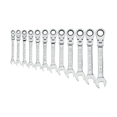 Flexible head of the ratcheting wrench set is designed for increased access in hard to reach areas. 72 teeth of the metric ratcheting wrench set provides 5 degree arc swing Full Polish Chrome Stamped hashmark pattern on wrench handle provides added grip points Sizes stamped twice on both sides of wrench handle for easier size identification 15 degree offset open end allows an increased range of arc swing in tight spaces DirectTorque(TM) Technology helps prevent rounding of fasteners Stamped markings provide permanent visibility and prevents wear over time, Weight: 3.7 Pounds, Manufacturer: DEWALT