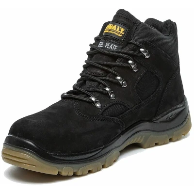 General description The DEWALT Challenger 3 Sympatex Waterproof Hiker Boots are designed for durability and comfort. Featuring a full grain nubuck leather upper, these boots incorporate a Sympatex waterproof and breathable membrane, ensuring your feet stay dry and comfortable in various conditions. The lightweight and flexible design includes a steel toecap for protection up to 200 joules and a steel midsole for underfoot protection. Technical specifications Colour: Black Size: UK 9 / EUR 43 Upper Material: Full grain nubuck leather Membrane: Sympatex waterproof and breathable Sole Material: TPU Sole Resistance: Resistant to petrol, chemicals, oil, and temperatures up to 120°C Safety Rating: S3-WR Slip Rating: SRA Shock Absorption: Yes Insole: Dual-density anti-bacterial EN Test: CE EN ISO 20345-2011 Other information