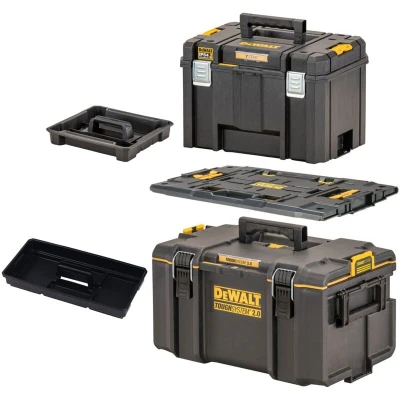 General description The Dewalt Toughsystem 2 Tstak Deep Tool Storage Box Set includes two durable storage boxes designed for both professional and personal use. These boxes provide IP65 water seal protection, ensuring that tools and fixings remain safe from dust and moisture. The system is fully backwards compatible with TOUGHSYSTEM 1 modules and allows for half module compatibility, making it easy to expand your storage options without replacing existing units. Technical specifications Model: DWST83346-1 Water and dust protection: IP65 Dimensions: Not specified Weight: Not specified Compatibility and accessories Compatible with TOUGHSYSTEM 1 modules Half module compatibility for future expansions Includes DWST83294-1 - Dewalt ToughSystem DS300 2.0 Tool Carry Case Includes DWST08017-1 - Dewalt Toughsystem 2.0 Adaptor Includes DWST83346-1 - Dewalt TSTAK 2.0 VI Deep Kit Box Adapter allows integration with TSTAK and ToughCase sets Installation Easy one-handed operation with metal wire