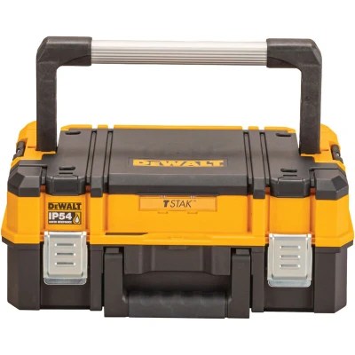 The DEWALT TSTAK 2.0 Shallow Toolbox is designed for professionals and DIY enthusiasts who require a durable and efficient storage solution for their tools and fixings. This toolbox stands out with its long, aluminium top carry handle, ensuring both comfort and ease when transporting tools to and from job sites.