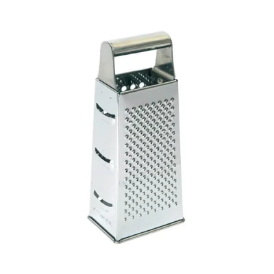 AmazonStainless steel rectangular Grater 4 grating and slicing surfaces Brushed steel handle Dishwasher safe Measures 9 x 6cm x 21cm high