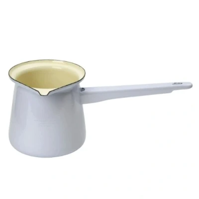 Dove enamelware 400ml Turkish Coffee Pot in a retro design (Measures 9cm high x 9cm diameter) Designed for making turkish coffee, but you could use for making and serving, sauces and gravies, as well as display Made from high quality steel with a vintage enamelled finish Suitable for any type of stove top or hob, including induction Dishwasher safe and easy to clean