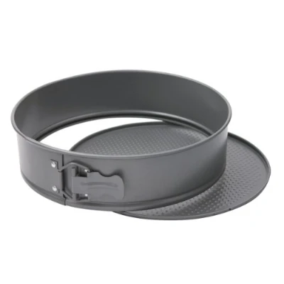 Good quality non-stick bakeware Bake or Make Cheese Cakes etc, loosen the ring by releasing the clip and remove Manufactured from a medium gauge carbon steel core with a distinctive grey colour Easy release non-stick coating The non-stick coating is PFOA free 5 year guarantee against manufacturing defects