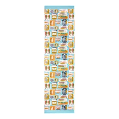 DIMENSIONS: Generously sized table runner measuring 200 x 40 centimetres, perfect for standard dining tables and buffet settings. MATERIAL COMPOSITION: Crafted from a sustainable blend of 60% recycled cotton and 40% virgin cotton for durability and style. DESIGN FEATURES: Vibrant vintage-style sardine tin print brings a playful coastal theme to your dining space. CARE INSTRUCTIONS: Machine washable at 30°C for convenient maintenance and long-lasting use. VERSATILE STYLING: Ideal for summer dining, seaside-themed gatherings, and everyday table decoration with its colourful maritime motif.